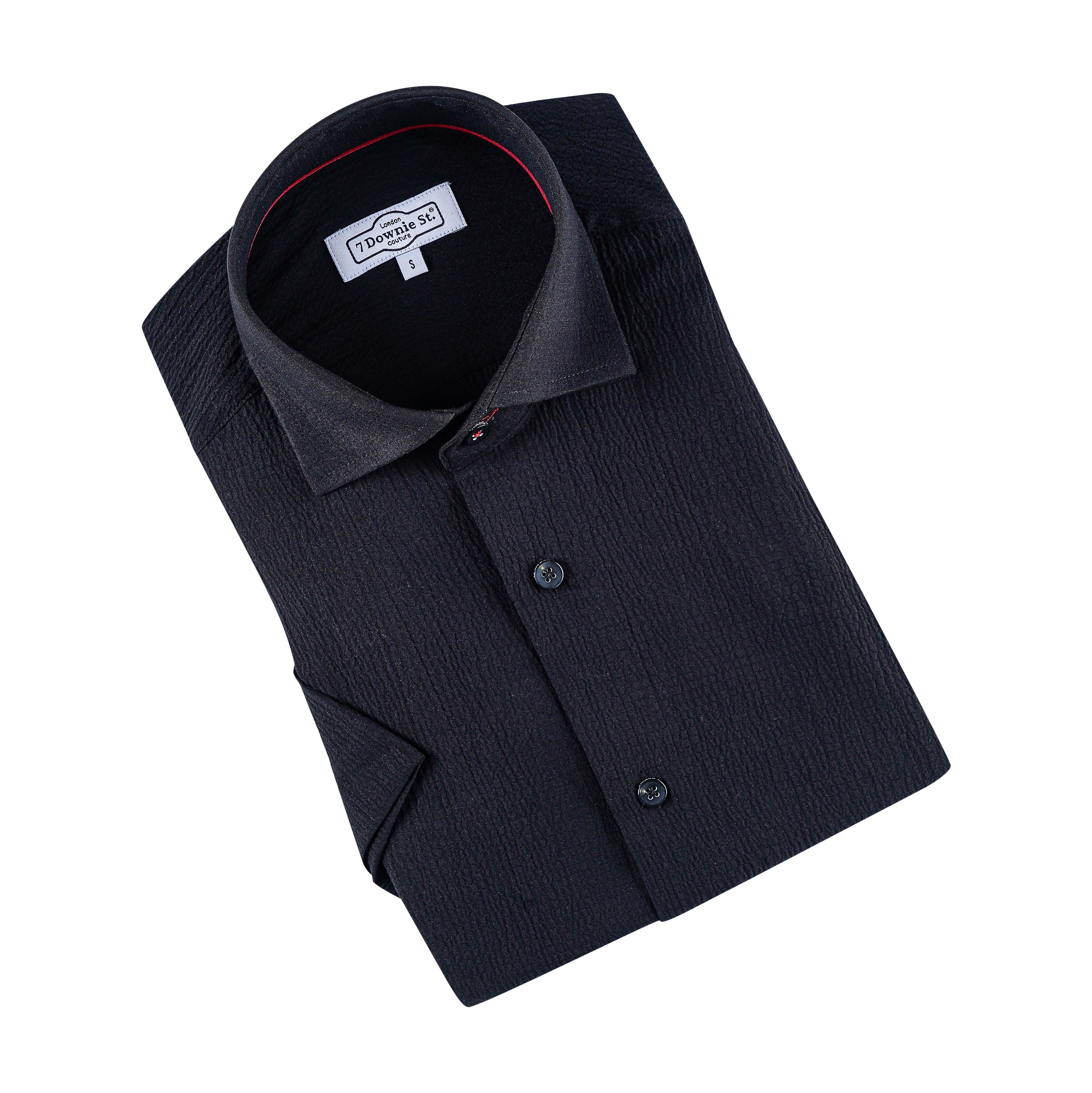 Elevate your warm-weather wardrobe with this 7 Downie Street short-sleeve seersucker shirt in classic black. The lightweight seersucker fabric delivers breathable comfort and distinctive texture, ideal for spring and summer days. Its timeless silhouette works seamlessly across casual weekends and smart-casual settings. Style number SS 753 from the Spring 2026 collection.
