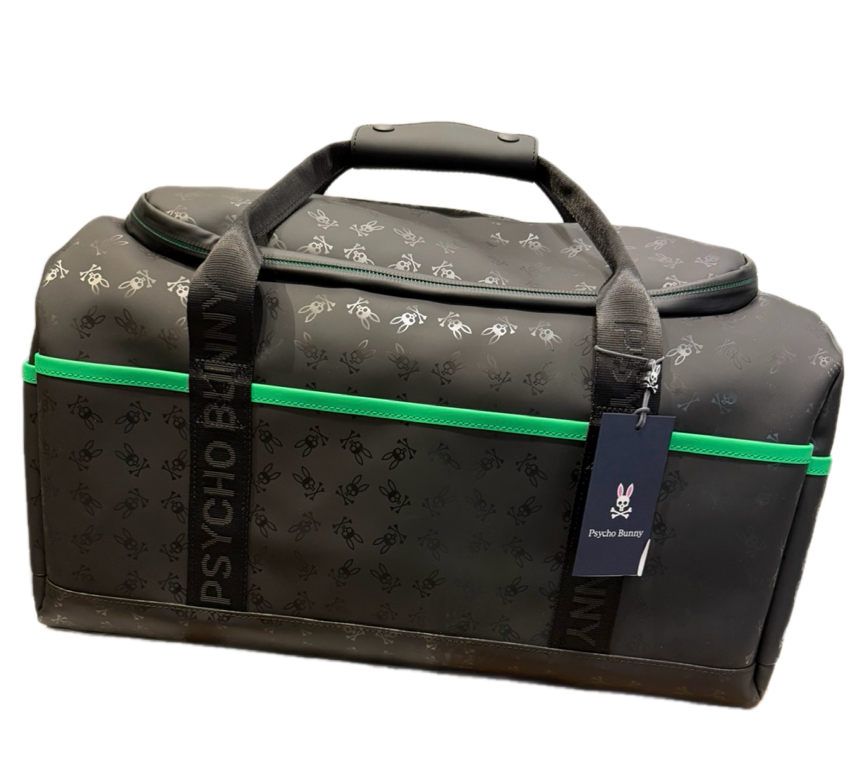 Hop into your workout with serious style. This Psycho Bunny gym duffle features an all-over bunny print that brings personality to your fitness routine. Spacious compartments keep your gear organized, while durable construction handles whatever you throw at it. Whether you're heading to the gym or the court, this black bag proves that athletic gear doesn't have to be boring. Train hard, look good doing it.