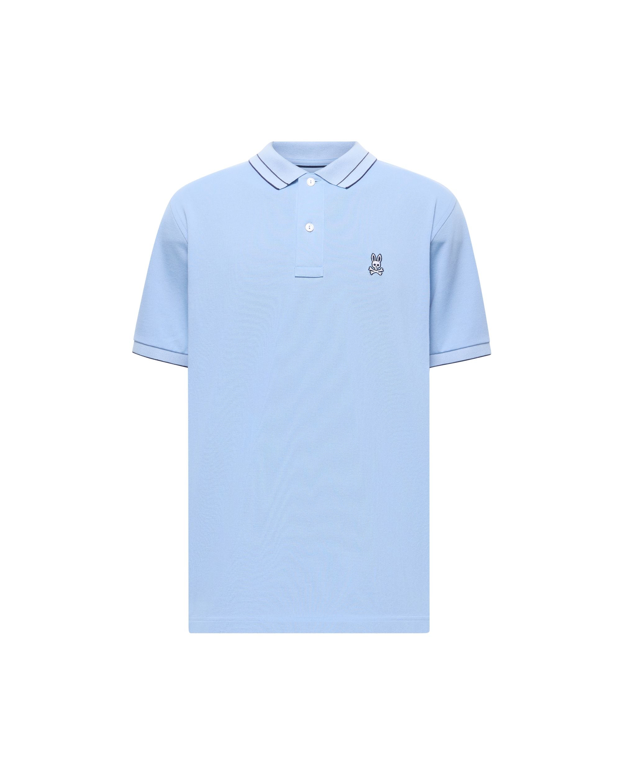 Hop into comfort with the Psycho Bunny Rex Performance Pique Polo in Serenity. Crafted from a premium blend of 59% pima cotton, 34% polyester, and 7% spandex, this polo delivers softness with a touch of stretch for all-day wear. The refined pique knit construction keeps you looking sharp whether you're on the course or out for the day. Made in Peru with meticulous attention to detail, this versatile piece pairs effortlessly with your favorite bottoms. Pure performance meets playful style.