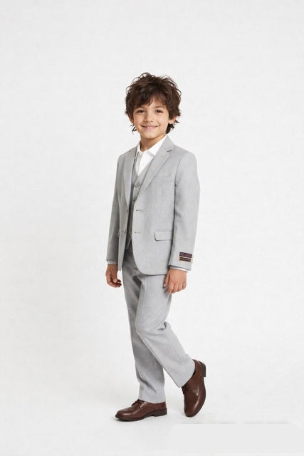 Perfect for special occasions, this Giorgio Fiorelli boys suit in light grey offers timeless elegance and sophistication. Ideal for communions, weddings, formal events, and celebrations, the suit combines quality craftsmanship with a refined aesthetic. The light grey shade provides versatility and a polished appearance that works beautifully with various accessories. Designed for young gentlemen who want to look their best, this suit delivers comfort and style for memorable moments.