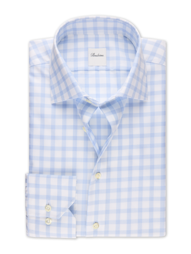 This Stenstroms classic strikes the perfect balance between sharp and laid-back. The light blue checked twill in twofold cotton feels substantial without being stuffy, while the moderate cut-away collar keeps things modern and versatile. Mother of pearl buttons add a touch of understated elegance, and the single cuffs mean you can roll them up for a more relaxed vibe or keep them crisp for the office. Whether you're dressing up or keeping it casual, this shirt's got your back—literally and figuratively.