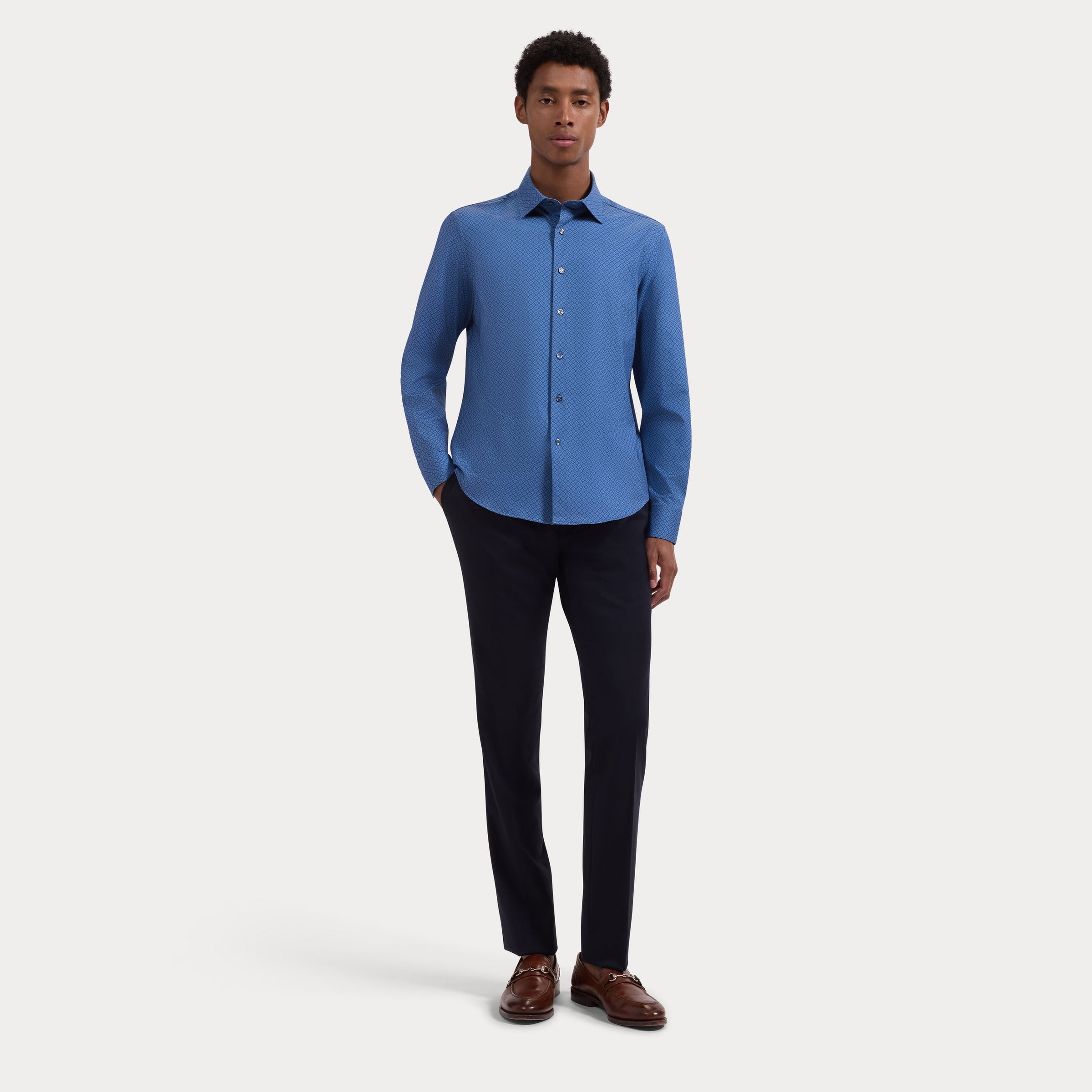 Bugatchi - OoohCotton® Double-Sided Diamond & Leaf Print Shirt - Cobalt