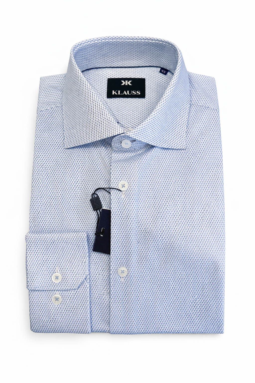 The Klauss Light Blue Micro Texture Dress Shirt delivers modern sophistication with subtle detail. Featuring a refined micro-pattern on a light blue base, this shirt offers a clean, polished look that works effortlessly for both professional and formal settings.
